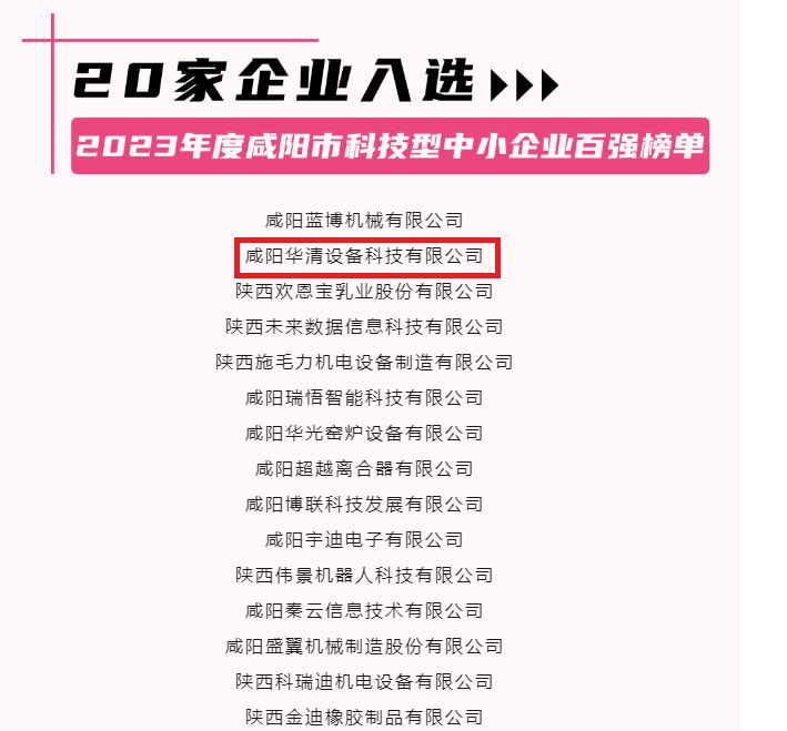 熱烈祝賀咸陽(yáng)華清設(shè)備科技有限公司榮獲2023年度咸陽(yáng)市科...